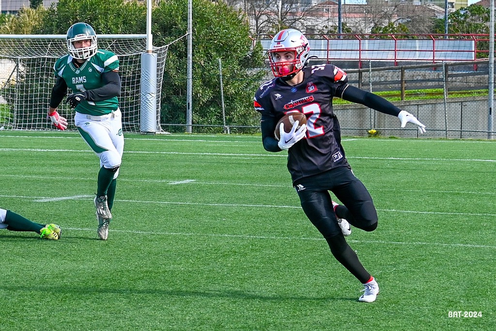 Se nella prima gara ufficiale della tua vita ti fai notare con un intercetto, vuol dire che il futuro potrebbe riservarti belle sorprese. Riccardo Melis, defensive back, non dimenticherà mai quel momento che in pratica ha contrassegnato il capovolgimento di forze tra Cru e Rams dopo le nette sconfitte subite nella scorsa stagione. Il neofita cagliaritano ricorda quel gesto atletico: “Quando ho fatto l’intercetto stavamo marcando a zona, io sono andato nella mia e ho visto che il QB avversario stava lanciando dal mio lato; il lancio era troppo lungo e me la sono ritrovata praticamente in mano. È stata una grande emozione riuscire a esordire in questo modo”.