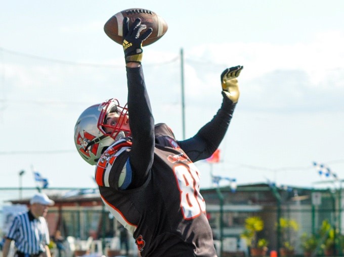 Il risultato finale dice di una supremazia che si è spalmata nell’arco di tutti i quarti. Siro Thomas Lauchlan Meloni ha l’onore di “sporcare” il referto con una delle sue più classiche performance atletiche dove braccia, elevazione e coordinamento uniforme dell’agile fisico gli permettono di sfruttare con eleganza l’intuizione del qb Max Mandas.