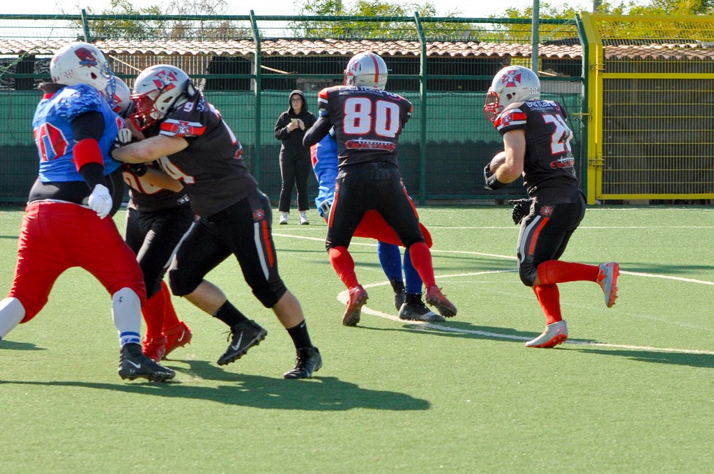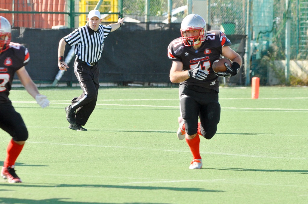 E a proposito di coaching staff ecco la puntuale disamina da parte di Aldo Palmas, offensive coordinator nero-rosso-argento: “Le settimane di allenamento sono servite a lavorare sugli errori commessi nella prima partita. Abbiamo focalizzato gran parte delle energie soprattutto con la linea d’attacco. E il rendimento eccezionale di Max Mandas sia come qb nel primo quarto, sia come ricevitore nel resto della partita rappresenta la ciliegina sulla torta”.