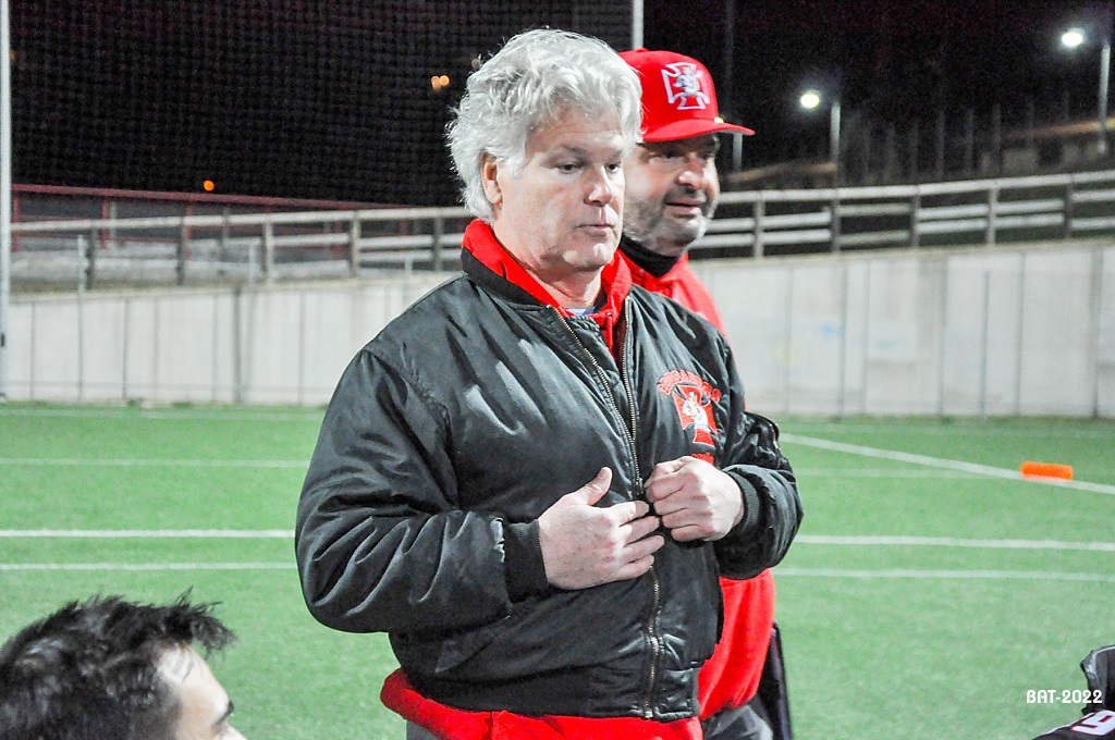 Cose semplici, ma ben fatte, da ripetere fino allo sfiancamento totale. Tim Tobin non ha alternative nei confronti dei suoi ragazzi, perché la cultura del Football abbisogna di impatti precisi e diretti. L’head coach spiega il largo successo e le differenze rispetto alla prima uscita stagionale: “Penso che il segreto stia sul mese in più di allenamento – dice – a cui si sono sottoposte le linee offensive e difensive. Ne abbiamo approfittato per insegnare le basi e le tecniche che purtroppo in Europa sono molto carenti”. Poi si sofferma su qualche dettaglio: “Alla linea offensiva è stato insegnato come comunicare e usare gli split per ottenere il successo. Aggiungo inoltre che dietro la vittoria c’è sicuramente lo zampino di Max Mandas che nell’ultimo mese è stato altruista, partecipando con largo anticipo agli allenamenti per apprendere più nozioni possibili sull’essere un QB. Michele Meloni ha fatto il resto aprendo il gioco con la forza del braccio e il suo atletismo”. Riserva buone parole anche ai Sirbons: “E’ una buona squadra con bravi ragazzi. Spero il meglio per loro”. Infine una dichiarazione di affetto per i suoi stretti collaboratori: “Gli allenatori di attacco e difesa sono meravigliosi. Amano il gioco e i giocatori. Come squadra continueremo a migliorare ma anche la concorrenza sarà sempre più dura”.