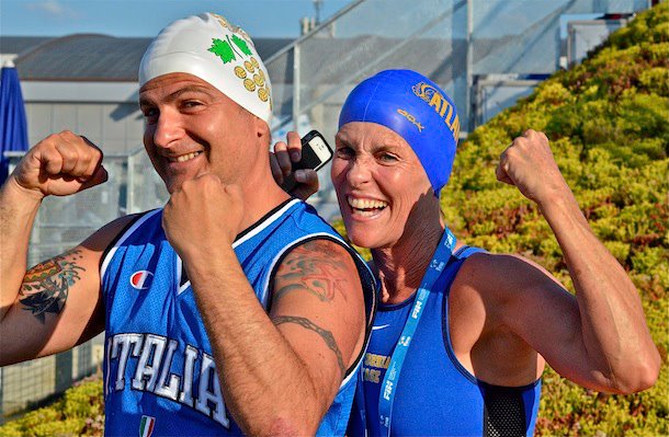 Si, vanto un record di cui vado molto orgoglioso. Sono sempre stato tesserato agonista FIN senza mai saltare un campionato, dalle categorie dei bambini sino ai 40 anni. A 41 mi sono tesserato master e a 50, per togliermi uno sfizio mi sono nuovamente tesserato agonista vincendo quella che io chiamo la “medaglia della vergogna”.