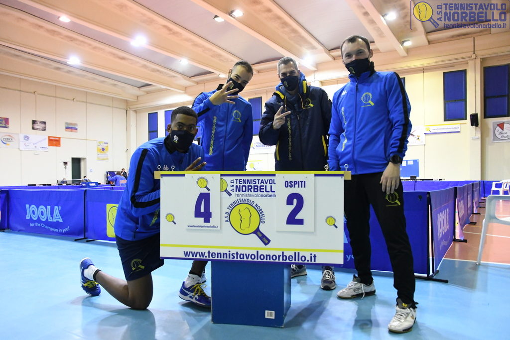 Ma il risultato più sorprendente lo incamera il Tennistavolo Norbello, trionfatore lo scorso anno del girone B di A2. Al ritorno nell’olimpo pongistico italiano batte quell’AON Milano Sport che lo scorso anno, prima del blocco, era in piena lotta per l’aggiudicazione dello scudetto. Nella palestra di via Azuni il team giallo blu realizza due doppiette personali con il cubano Moises Campos e l’ucraino Yaroslav Zhmudenko. Il terzetto è completato dal campano Pasquale Vellucci.