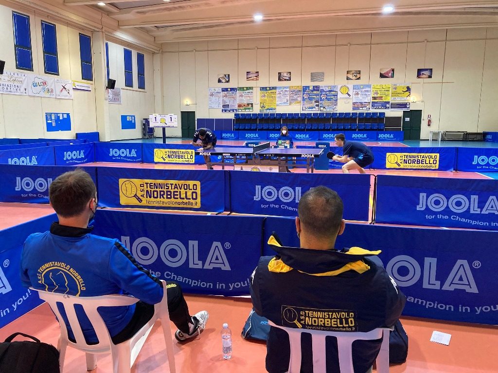 Le sensazioni di Luca Paganelli: “Trovo utile precisare che, probabilmente a causa delle norme anti- covid, si è utilizzata una formula particolare: partite al meglio dei tre punti, con la “courbillon” senza doppio (A-X/B-Y/A-Y/B-X). In quest’anno particolare, insomma, il pareggio é ammesso. Dettaglio non di poco conto, considerando che le squadre partecipanti sono abbastanza equilibrate. Nel primo concentramento piemontese ce la siamo dovuta vedere prima con l’A.S.D Circolo Tennistavolo Molfetta e poi con i padroni di casa del Frandent Group CUS Torino. Del collettivo pugliese fanno parte Lorenzo Magarelli, un buon “terza categoria” e Luca Fumarola. Scegliamo la formazione A-B: parte Andrea con Fumarola: finisce 3-1 per il mio compagno di squadra che riscalda il motore. A me spetta un Magarelli padrone del campo: gestisce il mio puntino al meglio e chiude 3-0. Sigla il secondo punto anche su Andrea, liquidato per 3-1. Nell’ ultima partita porto a casa il pareggio battendo 3-0 Fumarola. Alle 13 la fame comincia a farsi sentire, il calendario però non concede pause: dobbiamo competere con il C.U.S Torino che annovera tra i suoi componenti il “seconda categoria” Lorenzo Cordua. Parte Andrea contro il giovane Spinicchia: vince 3-0 soffrendo nell’ultimo set, portato comunque a casa per 14-12. Io con Cordua perdo 3-0 facile, mentre Andre riesce a portargli via un set. Nell’ ultima partita io me la vedo contro la riserva Panipucci: vinco 3-1, perdendo il primo set per 11- 5. É necessario a questo punto un altro chiarimento: al termine del secondo concentramento sarà ampiamente probabile la presenza, tra i primi posti, di squadre a pari punti. Prendo spunto direttamente dal regolamento: Se due o più componenti del girone hanno ottenuto lo stesso numero di punti, le loro relative posizioni devono essere determinate dai risultati dei soli incontri tra di loro, considerando in successione il numero dei punti dei match, il quoziente totale delle partite individuali vinte e di quelle perse, dei set e dei punti fino quando non sia sciolta la parità. Se in qualsiasi momento del calcolo la posizione di uno o più componenti del girone è stata determinata, mentre altri sono ancora in parità, i risultati degli incontri a cui quei componenti hanno preso parte devono essere eliminati da qualsiasi ulteriore calcolo necessari a risolvere la parità. Se non fosse possibile risolvere la parità secondo le procedure specificate in precedenza, le posizioni delle squadre in parità saranno determinate per sorteggio. La partita col Torino ci vedrebbe perdenti in un’ ipotetica situazione di parità al termine del concentramento, per differenza punti. In ogni caso possiamo dirci complessivamente soddisfatti di aver portato a casa due pareggi con squadre tutt’ altro che scarse. Ci prepareremo in questo mese per affrontare le due avversarie rimaste: lo Sport Club Etna ed il Tennistavolo Marco Polo. Tutto è possibile, daremo il massimo”.