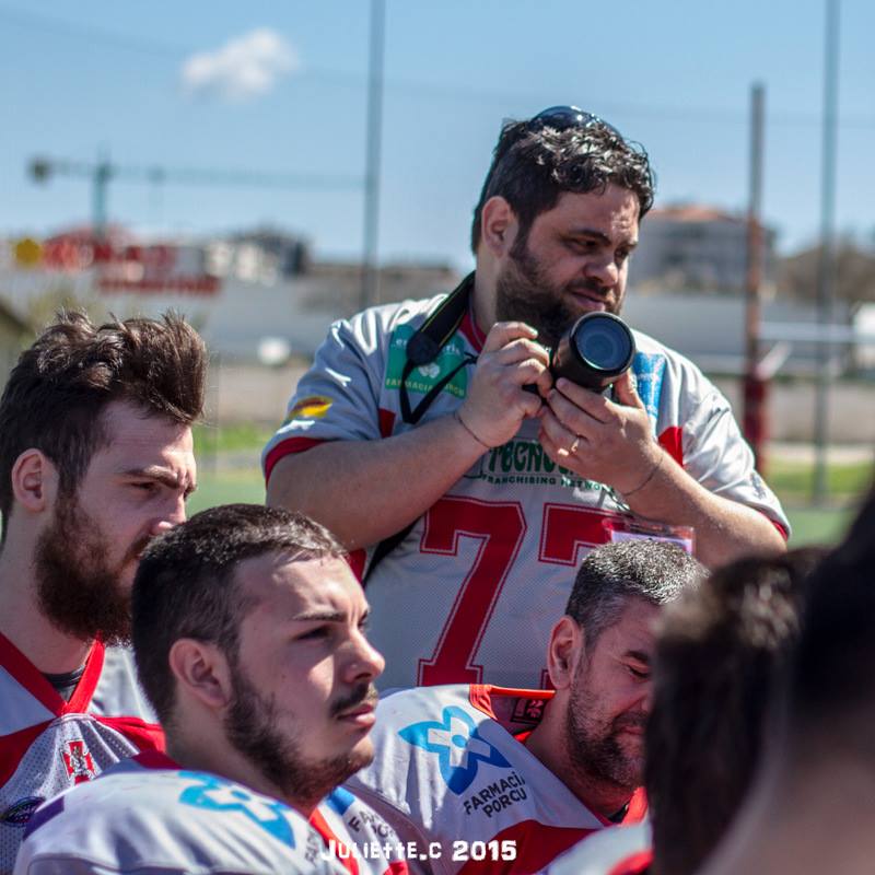 I ricordi del suo primo impatto con il football sono abbastanza freschi. Infatti la guardia Massimo Tecli ha iniziato a giocare lo scorso campionato. “Mi sono misurato con un mondo completamente nuovo – precisa il giocatore – di cui sapevo poco e niente, nel quale ho iniziato sia ad allenarmi, sia ad imparare le regole. Non ci è voluto molto per appassionarmi a questo bellissimo sport, sin dai primi allenamenti con casco e shoulder mi son divertito ed entusiasmato. L’unico rammarico è il non aver saputo prima di questo disciplina. Poi sia i compagni di squadra, sia i coach son stati da subito molto disponibili nell’aiutarmi in ogni ambito di gioco, cercando di trasmettermi esperienza e grinta”.