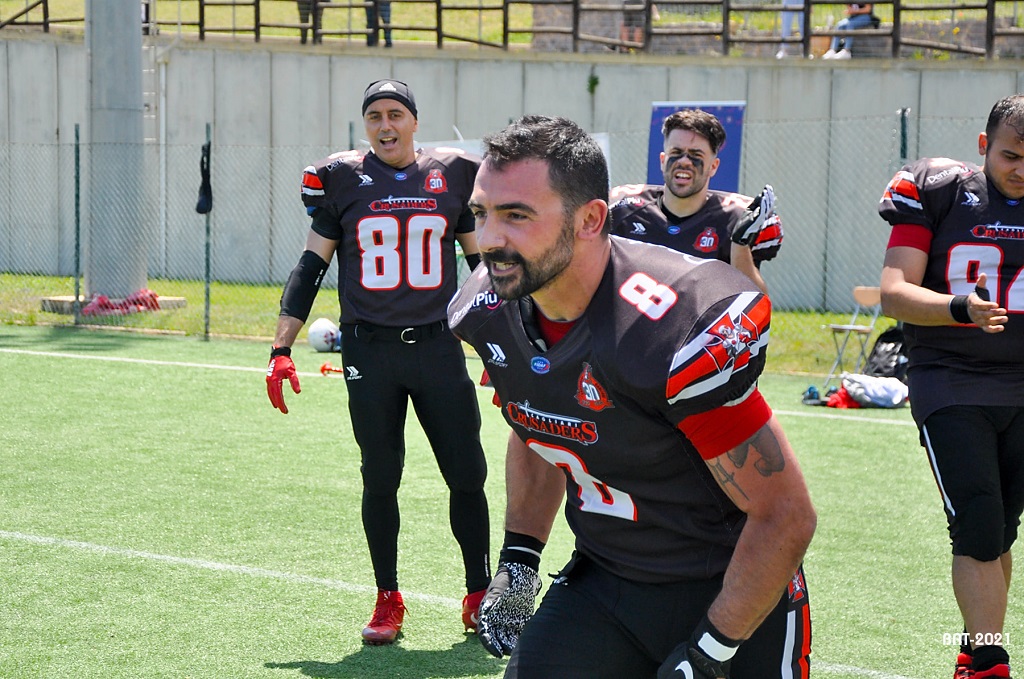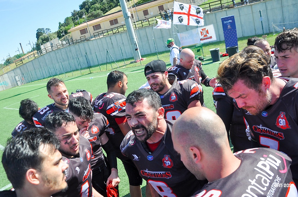 La prima parte della sfida si caratterizza da un sostanziale equilibrio, fino a quando i capitolini sbloccano il risultato grazie ad un field goal. È probabilmente un episodio che galvanizza la Legio XIII e allo stesso tempo turba i crociati che di lì a poco subiscono il primo dei tre touchdown locali. I restanti, infatti, arrivano dopo l’intervallo senza che la franchigia sarda dia dei segnali concreti di reazione. A rendere meno pesante il passivo ci pensa il runningback Mattia Billardello con una corsa.