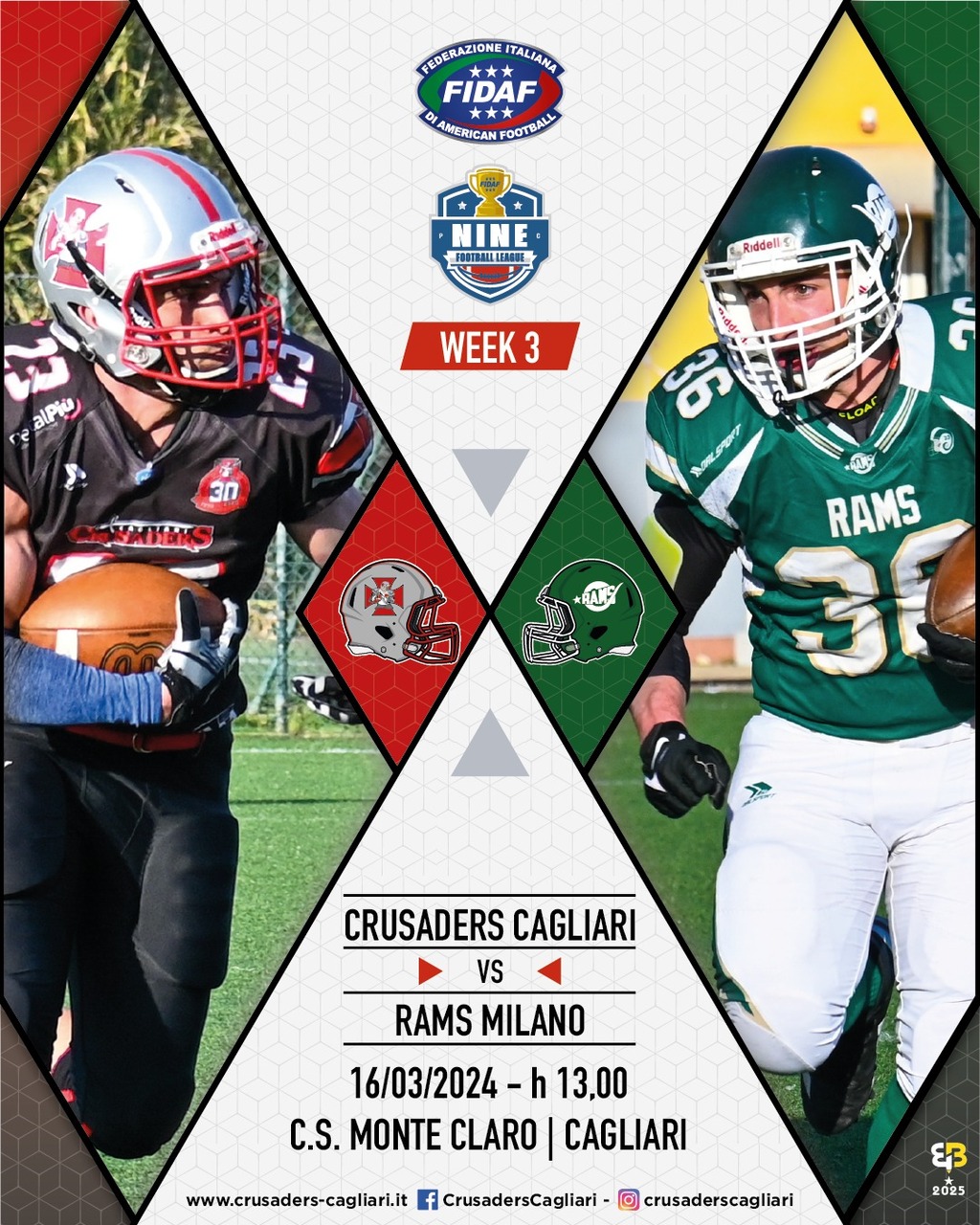 La locandina di Battista Battino Published 14/03/2025 at 1024 × 1280 in Football Americano: i Crusaders esordiscono a Terramaini.