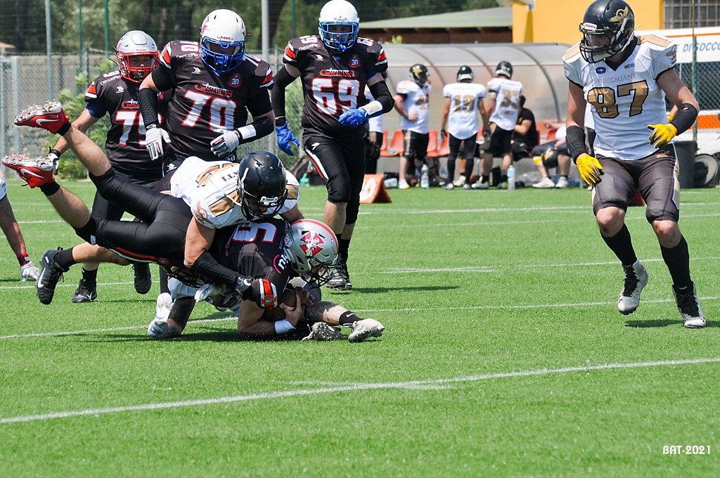 Dopo quattro gare, nel girone D, i Pretoriani stanno dimostrando di avere una vocazione abituale alla vittoria, anche se il derby capitolino di ritorno, sospeso per un guasto all’impianto di illuminazione (e che li vedeva in vantaggio 34-18) dovrà ripetersi mercoledì 9 giugno 2021. Nell’esordio casalingo stagionale i Crusaders impressionarono per il bel gioco esibito che però non sfociò nella vittoria causa inspiegabili ingenuità, replicate in maniera ancor più clamorosa sul campo dei legionari.