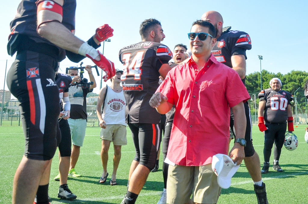 Michele Meloni (Qb Crusaders): “La vittoria di domenica la definirei pazzesca perché abbiamo giocato bene in quella che è stata la assidua ricerca di un riscatto. Pensando alle precedenti partite mi soffermo soprattutto a quella d’esordio dove ne è scaturito un risultato bugiardo. Nelle due successive sicuramente ci siamo presentati disorganizzati. In casa loro, invece, i Pretoriani hanno meritato perché erano più squadra di noi. Ma siamo stati bravi a riportare alla luce i valori collettivi nell’ultima gara in cui attacco e difesa si sono coordinati molto bene. Per quanto concerne il mio ritorno in campo tutto è successo dopo che a Leon (Spagna), dove sto ultimando il progetto Erasmus, ho assistito via streaming alla prima casalinga con i Pretoriani. Vedendo giocare i miei compagni mi è venuta una voglia assurda di tornare in campo; subito dopo mi sono coordinato con il coaching staff e fondamentale è stata l’intermediazione di Stefano Murgia e Aldo Palmas che mi hanno aiutato a trovare le soluzioni per consentirmi di giocare le ultime due gare. A giochi fatti ammetto come ne sia valsa veramente la pena. Attendo con ansia la prossima crociata da condividere assieme alle nuove forze approdate negli ultimi mesi”.