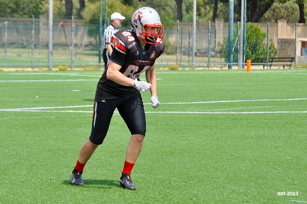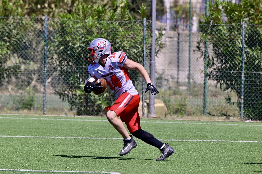Intanto arriva anche un’altra bella notizia con la convocazione dell’under 15 Riccardo Carta al raduno della Nazionale Italiana di Flag Junior che a Varese, per i giorni 25 e 26 maggio 2024 ha allestito il primo Evaluation Camp sotto la stretta sorveglianza dell’Head Coach Enzo Petrillo. Condividerà l’esperienza con altri 123 pari età provenienti da tutta Italia. Riccardo assieme ad altri suoi coetanei avrebbe dovuto prendere parte al campionato di Flag Under 15 ma la squadra fu estromessa per un equivoco burocratico. Lui però ha continuato comunque ad allenarsi con i senior per impratichirsi sempre di più.