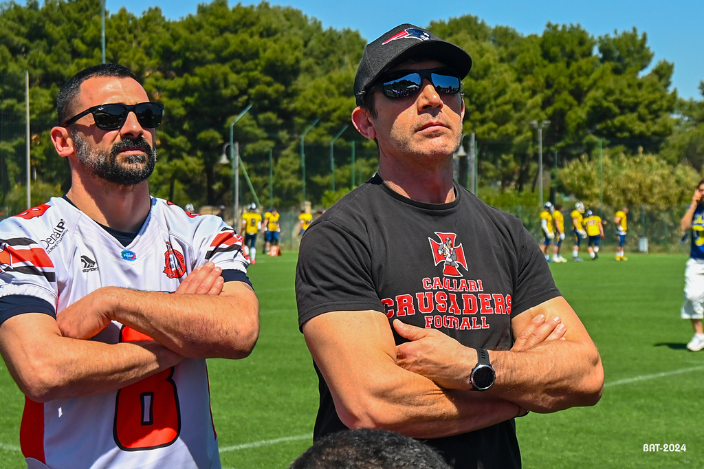“Fa molto piacere che sulle corse oltre al solito Francesco Loche si siano fatti notare con ottime portate sia Federico Pili, autore di due TD, sia Lorenzo Pastorino, sia Davide Anedda. Importante anche il grande lavoro della linea d’attacco che ha permesso a Michele Meloni di orchestrare ottimamente l’attacco alternando corse e lanci. Un grosso plauso va alla difesa che non ha veramente concesso nulla all’attacco avversario. In particolare da segnalare le prestazioni di Paolo Sitzia e di Emil Nabil Mokhtar Ashak che in linea di difesa hanno creato il panico nelle file avversarie. Ora abbiamo queste due settimane per settarci al meglio e lavorare per correggere gli errori e migliorare in vista della partita di wild card”.