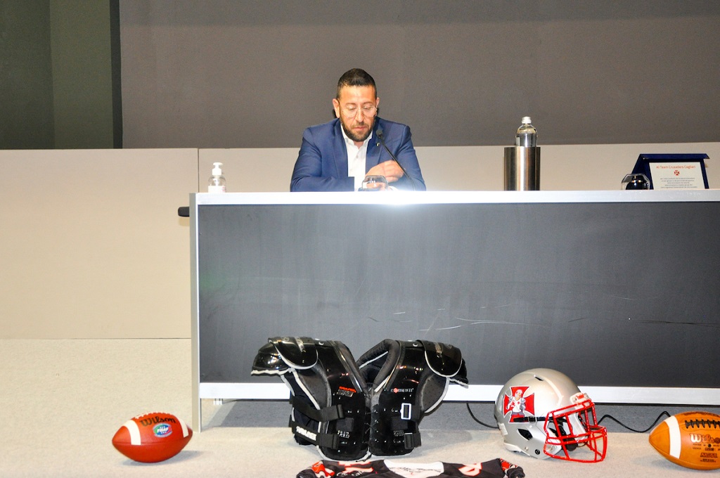 Con tante informazioni da sedimentare, anche le altre personalità coinvolte si mostrano interessate ai nuovi progetti dei Crusaders. Il presidente regionale del CONI Bruno Perra gioisce con gli interessati: “Faccio i complimenti ai Crusaders, oggi ho sentito bellissime notizie relative all’imminente accasamento, ma è una conseguenza dei miracoli fatti in questi trent’anni e che si sono realizzati grazie a due fattori fondamentali: amore e passione, conditi sapientemente dal vulcanico presidente Garzia”. Poi dice la sua sul passaggio della FIDAF da Disciplina Sportiva Associata a Federazione a tutti gli effetti: “E’ solo una questione di numeri, mi auguro che in Sardegna possano nascere altre squadre”. E poi approfitta della presenza delle alte cariche istituzionali isolane per ringraziarle: “Corpi Militari, istituzioni comunali e regionali hanno la mia profonda stima per la grande sensibilità e attenzione al mondo sportivo. Stiamo attraversando un periodo critico in cui i giovani soffrono a scuola, nello sport e fanno fatica a socializzare, ma senza l’aiuto di queste realtà la situazione sarebbe ancor più peggiore”.