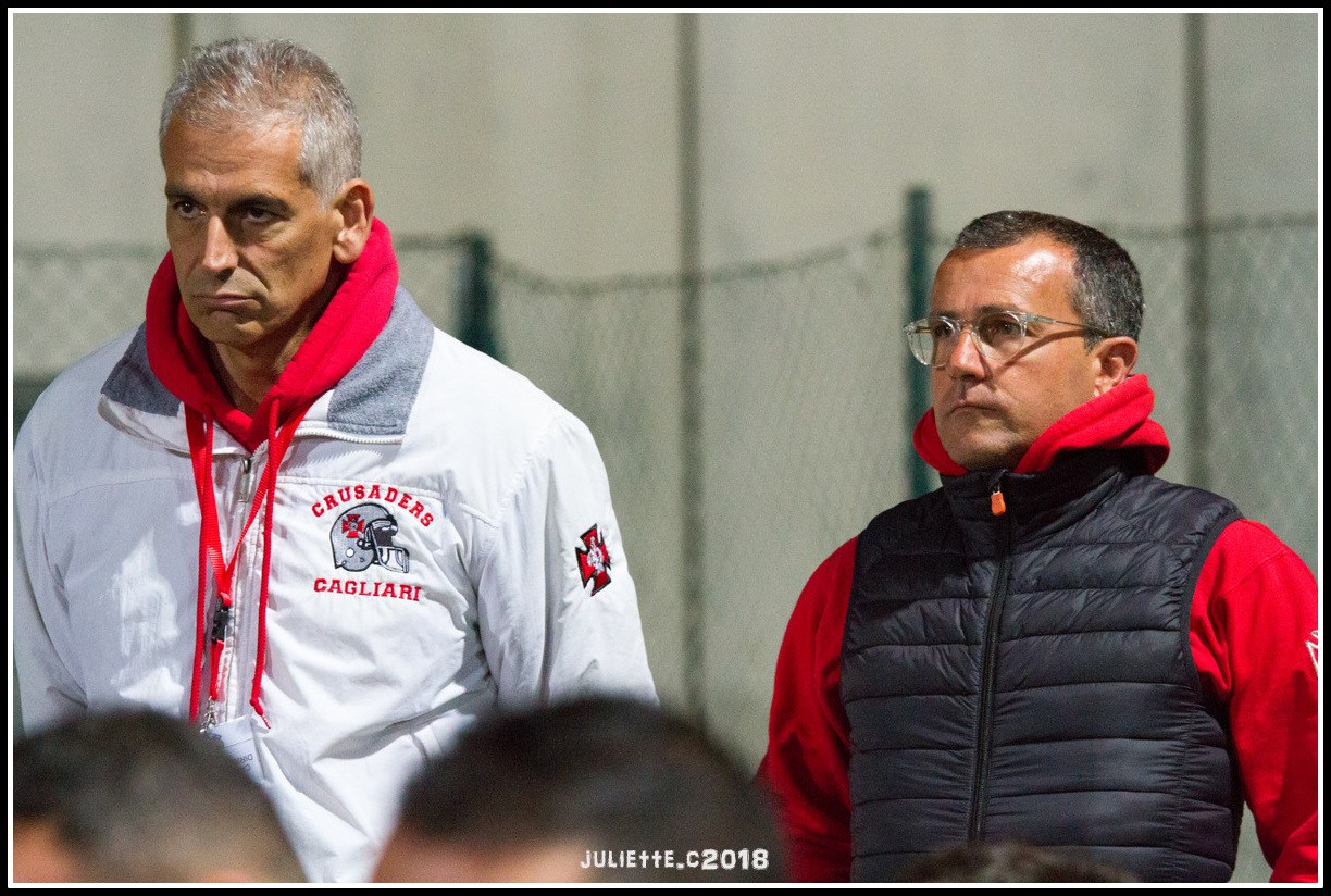 Efisio Melis (Special Teams Coach Crusaders): “Siamo partiti male, commettendo troppi errori stupidi. Soprattutto con fake punt e fumble ricoperto da loro e portato in touchdown. Purtroppo abbiamo un roster troppo corto per una stagione che si protrae diversi mesi. Speriamo che arrivi qualche nuova forza per costruire in futuro una squadra più competitiva. Jarvis ci sta preparando molto bene, ha insegnato una mentalità diversa che mira a pensare sempre positivo anche quando le cose non vanno come vorremmo. Ha ragione quando dice che i giocatori parlano troppo in campo e agiscono poco. Sarebbe meglio se avvenisse il contrario. In prospettiva futura ripartiremo da Michele Meloni che prenderà il posto di SAM Meloni; sta dimostrando di avere la giusta mentalità per farsi valere; lo definirei un trattore che per essere fermato devono intervenire anche in cinque”.