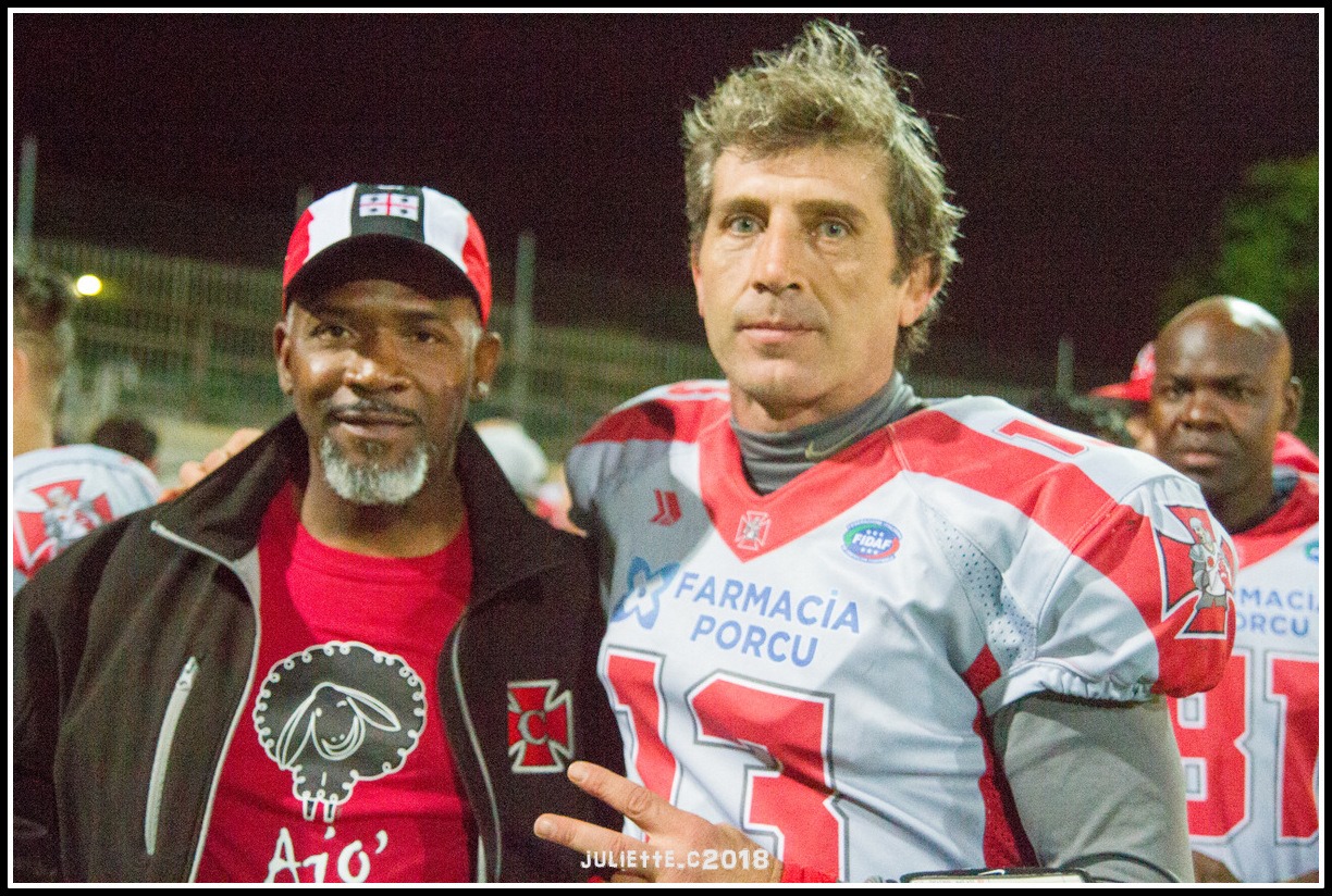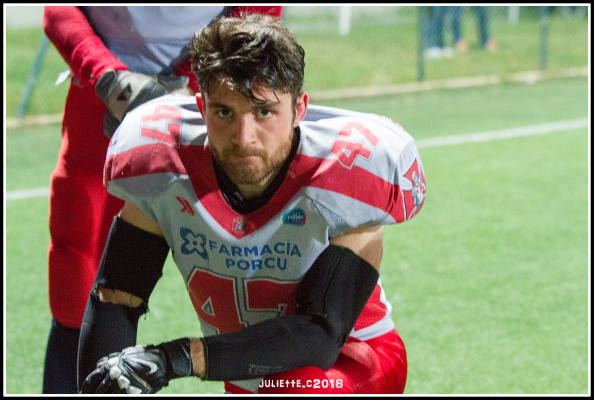 Bonifacio Ruggiu (Crusaders): “Da questa gara sono diventato cornerback, un ruolo per me completamente nuovo. Ero convinto di giocare per vincere e infatti ho dato il massimo anche se dopo la prima azione sono stato vittima di uno stiramento. A questo punto spero di che tutti insieme si cresca in propensione futura. Sono tantissimi i fattori che hanno causato questo rendimento negativo e neppure noi giocatori sappiamo spiegarcene le ragioni. Il coaching staff sta svolgendo un ruolo egregio, siamo noi che in campo non stiamo carburando; ci buttiamo giù con troppa facilità”.