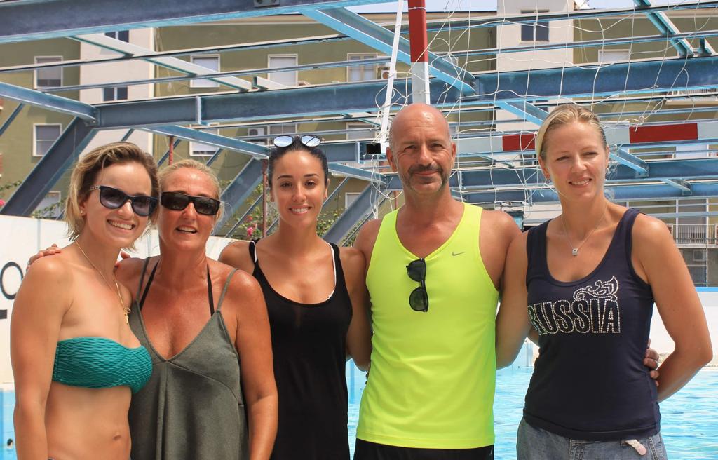 Da-dx-Anastasia-Ermakova-4-volte-oro-olimpico-di-Sincro-Stephan-Miermont-coreografo-di-fama-Internazionale-Vittoria-mamma-Camilla-e-Alexandra-Vasina-ex-atleta-della-nazionale-russa- Medasa| Media Sardegna