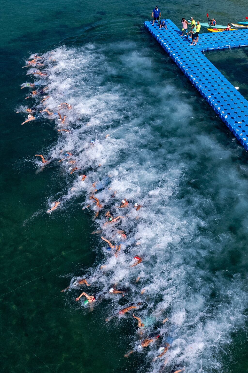 Alla fine anche gli inconsapevoli spettatori vengono trascinati dalle urla indemoniate dei ragazzi che dalla spiaggia incoraggiano i loro sodali, nel momento in cui completano i giri assegnati. Hanno cominciato ragazze e ragazzi di età compresa tra i quattordici e i quindici anni che hanno coperto cinquemila metri. Dopo di loro si sono immersi i colleghi di sedici e diciassette anni per assecondare un circuito lungo 7,5 km.