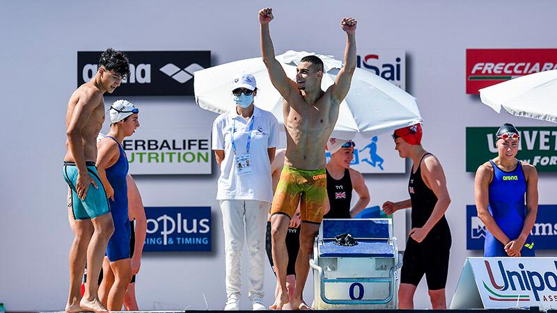 Non c’è tempo per rilassarsi. Fabio Dalu è partito in Macedonia, all’esordio con la cuffia della nazionale italiana per la prima delle sei tappe della Coppa LEN, una manifestazione internazionale di acque libere che il 9 ottobre 2021 approderà ad Alghero. E continua a sorprendere perché nel Lago di Ohrid fa la sua eccellente figura piazzandosi al quarto posto. Fabio non sa ancora se sarà presente nella Riviera del Corallo perché il 20 agosto ritornerà in Ohio (Stati Uniti), dove concilierà piscina e studi.