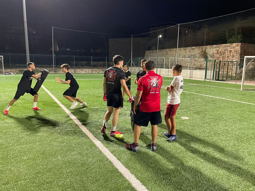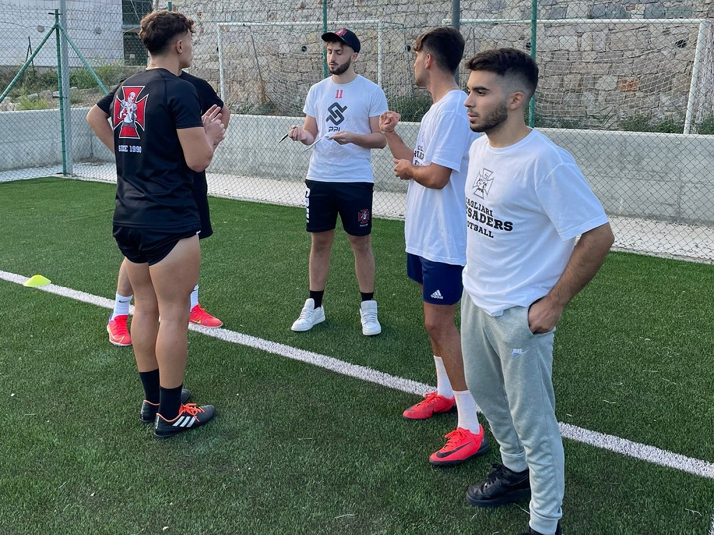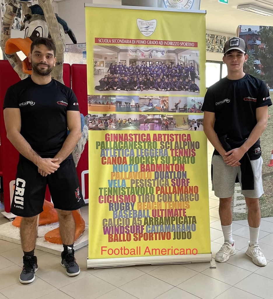 Tutto è cominciato con la visione del docufilm Noi (realizzato da Stefano Sernagiotto con la collaborazione grafica di Battista Battino) dedicato ai primi trent’anni di vita della franchigia isolana. Poi via alla fase pratica con esercizi preliminari utili a prendere confidenza con i contatti e la palla ovale. Per tre terze medie dell’Istituto ad indirizzo sportivo Porcu – Satta di Quartu S. Elena il Football Americano non è più uno disciplina dai contorni indecisi. E questo grazie alle recenti e assidue incursioni scolastiche del presidente Emanuele Garzia e dei due atleti Massimiliano Mandas e Lorenzo Spadaccino. La gioia del team crociato si è quasi trasformata in commozione quando all’Open Day si è presentato il piccolo Andrea, un alunno, appassionato di Football della prima ora. “Ha quasi costretto i genitori a portarlo in via Monsignor Cogoni – dice Garzia – voleva esserci a tutti i costi perché doveva coronare un sogno coltivato da tempo. Ora allargheremo il nostro raggio d’azione perché vorremmo organizzare un torneo interscolastico di flag football.