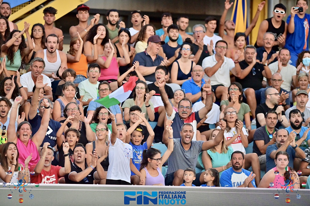 Dosi massicce di incoraggiamenti giungono copiose anche da una tribuna d’onore visibilmente più coinvolta. L’assessora allo Sport della municipalità sassarese, Rosanna Arru, ha fatto morire d’invidia gli amanti più veraci della disciplina per quella calottina tricolore ricevuta in dono dallo staff azzurro.