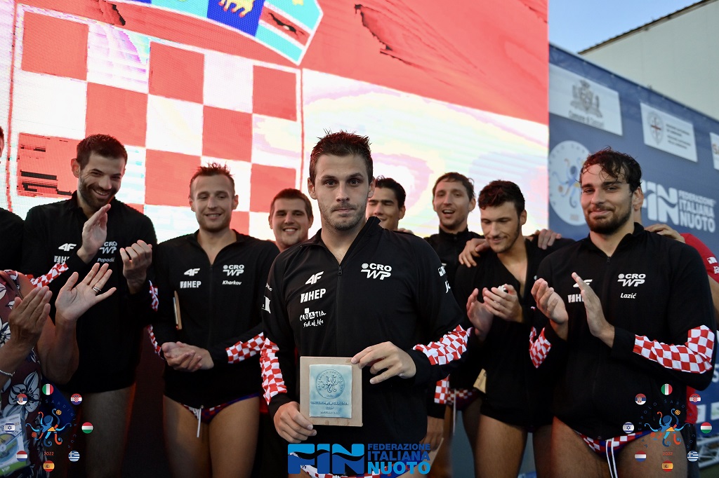 Non è dello stesso spessore agonistico l’ultima gara del calendario che vede la Croazia incamerare subito un consistente vantaggio ed amministrarlo nel corso dei quattro tempi: e così quella Grecia che era partita a razzo sconfiggendo gli azzurri, si ritrova all’ultimo posto della graduatoria. Lascia il segno uno sparuto gruppo di tifosi ellenici dall’ugola inscalfibile capace di pronunciare “Ellas, Ellas” talmente tante volte che in presenza di una giuria del Guinness si sarebbe assicurato il record. Ma nell’arco dell’intera manifestazione sono stati diversi i supporters stranieri soggiornanti nell’isola che hanno deciso di andare a sostenere i loro pallanuotisti del cuore. È croato invece il giocatore migliore del torneo: un pool di esperti ha deciso che il premio andasse a Loren Fatović, autore di sei reti proprio nel match conclusivo.