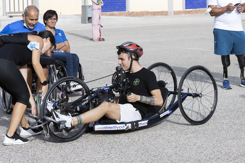 Li tratto alla stessa stregua dei normodotati. Sono loro che devono rendersi conto di essere atleti. La disabilità non va interpretata come una problematica che possa rallentare l’evoluzione di un atleta, bensì va letta come una situazione contingente. Pensiamo ad un atleta che non riesce a fare qualcosa perché ha un arto troppo lungo o troppo corto. Il paralimpico ha a che fare con una disabilità dovuta ad un incidente o dalla nascita con la quale, soprattutto nella fase sportiva, deve conviverci e assimilarla non come un evento negativo. Il fatto che possano essere in una sedia a rotelle o con una gamba sola vuol dire che si applicheranno o con un pedale solo o con le braccia. Detto questo per me è finita la disabilità. Se poi si ha bisogno di più tempo per andare in bagno o per fare le cose giornaliere, si prenderanno i loro spazi più idonei. L’allenamento va misurato sull’atleta in base a quello che può rendere.
