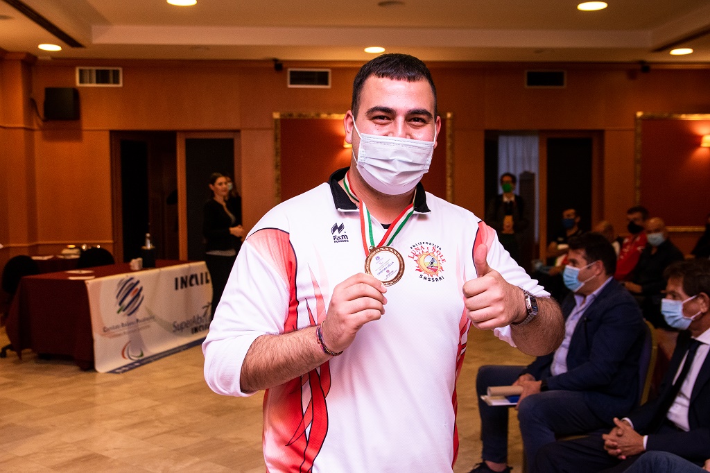 Cristian Lella (FISPES – FISDIR – Pol. Luna e Sole Sassari) C.I. Lancio del Peso – cat T. 20 Ancona 2019, Jesolo 2019. C.I. Peso 5kg, Ancona 2019.