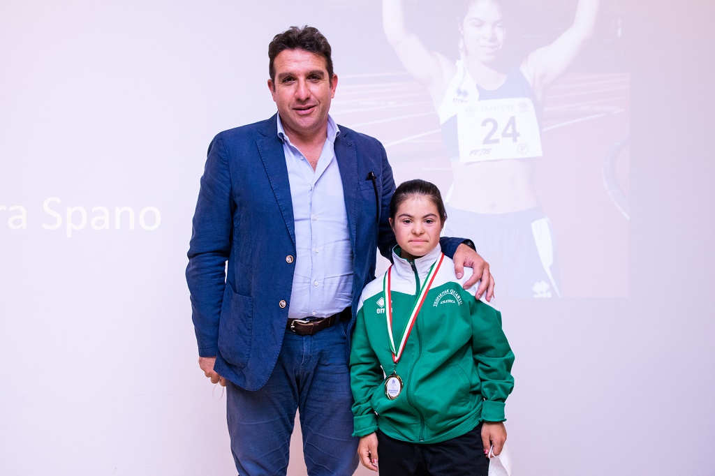 Sara Spano (FISDIR – SA.SPO/Tespiense Quartu) Atletica leggera: Campionessa Europea 400 mt (record Italiano), 4×100, 4X400 (record del mondo), Tampere 2019. C.I. 200 mt indoor C21, Ancona 2019, Ancona 2020.