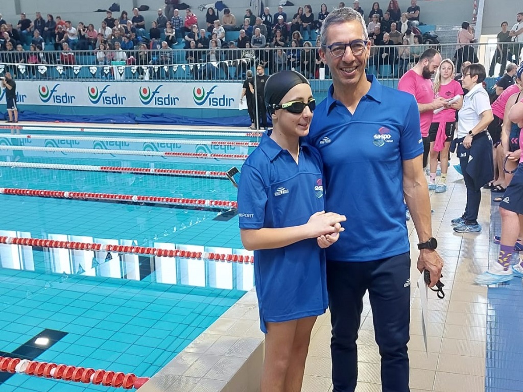 E non sono da trascurare le prestazioni dei nuotatori FINP (Federazione Italiana Nuoto Paralimpico) Samuel Fanni ed Elena Congiu, ben indirizzati verso traguardi futuri di qualità. Insieme si sono piacevolmente confusi in mezzo ad una irrefrenabile allegria da condividere con oltre un centinaio di atleti confluiti da tutta l’isola; è stato davvero semplicissimo per loro, pronti a socializzare ma anche a mettere in pratica le coordinate basilari escogitate dai loro tecnici di riferimento.