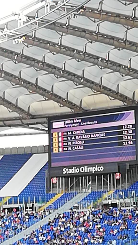 Il tabellone dell’Olimpico certifica il successo di Mattia Cardia