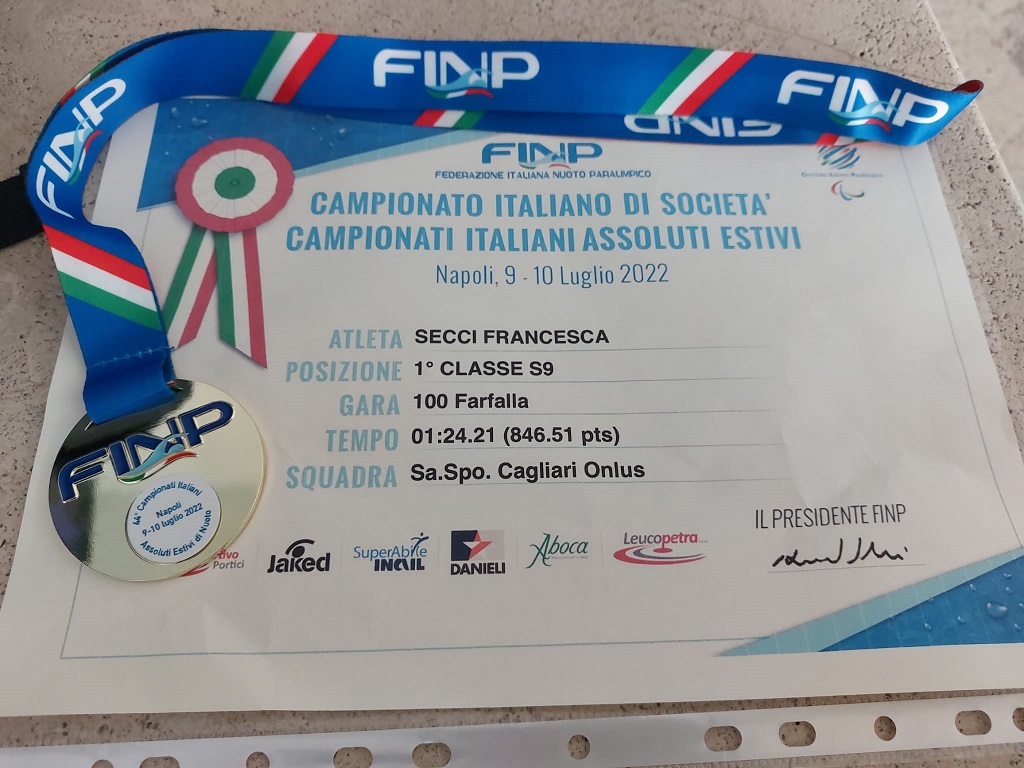 Alla spicciolata arrivano anche i dettagli: la piscina partenopea Scandone rappresenta un portafortuna per Francesca perché è da lì che, diciassette anni fa, cominciò la sua brillante carriera sportiva, prodiga di titoli tricolori e coronata dalle due partecipazioni alle paraolimpiadi. Dopo il fermo nelle due rassegne estive, quello del 2021 volontario, la nuotatrice selargina riprende contatto con l’agonismo dalla A maiuscola (c’era il fior fiore dei campioni che hanno portato l’Italia in cima ai recenti Campionati del Mondo di Madeira), manifestando uno stato di forma davvero impeccabile. Nei 100 stile, categoria S9 non solo è la più forte, ma migliora il suo personale di quasi due secondi (01: 12.01). Papà Claudio e mamma Susanna, accompagnatori ufficiali visti i contrattempi del tecnico Alessandro Medda, sembrano appagati, ma si devono ricredere qualche ora dopo quando la figlia sbalordisce pure nei 400 grazie ad una accelerata finale che le fa abbassare il personale di cinque secondi (05: 22.08). Arrivati a quel punto, perché non dormirci su e ricaricare le batterie per i 100 farfalla dell’indomani? E infatti il sipario della docente-campionessa si chiude con l’oro nei 100 farfalla e il personale che scende di ben tre secondi, davvero tanto per una distanza così breve (01: 24.21).