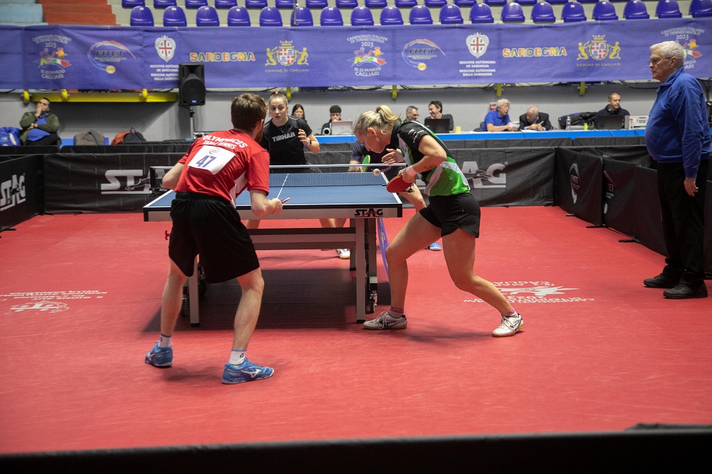 In finale hanno prevalso per 3-1 (7-11, 11-7, 11-5, 11-8) sui n. 4 Antonino Amato (Marcozzi Cagliari) e Nikoleta Stefanova (CIATT Prato), autori dell’eliminazione nell’ordine per 3-0 (11-6, 11-7, 11-1) dei n. 13 Mattias Mongiusti (Milano Sport Tennistavolo) ed Elisa Armanini (TT Torino), per 3-1 (8-11, 11-4, 11-8, 11-4) dei n. 5 Carlo Rossi (Marcozzi Cagliari) e Nicole Arlia (TT Castel Goffredo) e per 3-1 (11-9, 10-12, 11-9, 11-9) dei n. 8 Alessandro Baciocchi (Gruppo Sportivo Fiamme Azzurre) e Arianna Barani (CIATT Prato), che nei quarti avevano compiuto l’impresa di costringere alla resa per 3-2 (11-9, 6-11, 2-11, 11-8, 14-12) i n. 1 e campioni in carica Niagol Stoyanov (Gruppo Sportivo Fiamme Azzurre) e Giorgia Piccolin (Centro Sportivo Esercito).