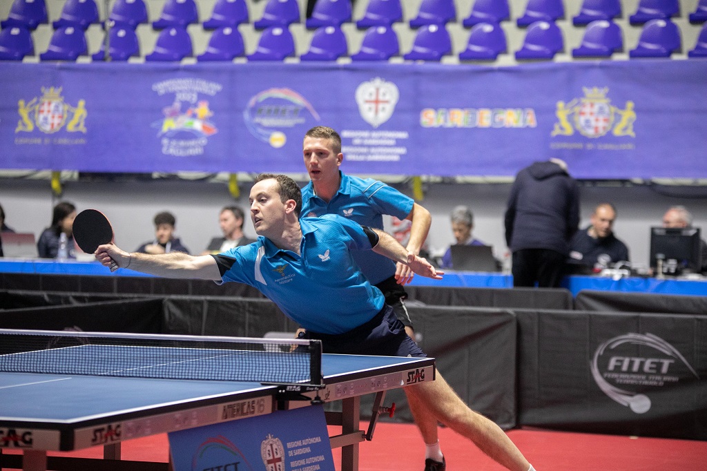 I fratelli mantovani hanno eliminato per 3-0 (11-4, 11-7, 11-3) i n. 7 Giacomo Allegranza (Cus Torino) e Daniele Spagnolo (Marcozzi) e per 3-2 (10-12, 11-9, 11-9, 11-13, 11-7) i n. 3 e campioni uscenti John Oyebode (Tennistavolo Sassari) e Jordy Piccolin (Gruppo Sportivo Fiamme Azzurre), che sono saliti sul terzo gradino del podio con Amato e Pinto.