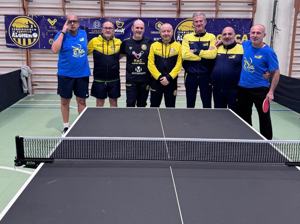 Nel girone A della serie C master, dopo quattro giornate incomplete, a guidare la classifica a punteggio pieno c’è Il Cancello Alghero che ha organizzato il secondo dei tre concentramenti previsti. Nessun problema per il trio composto da Marco Tiloca, Carmine Niolu e Emilio Albero, imprendibili sia nei singolari, sia nei doppi. Nel primo impegno sono caduti nella trappola catalana i giocatori del Guilcier Ghilarza Iskra (composta da Nicola Cuccureddu e Alessandro Faedda) che stazionano in vetta con gli stessi punti dei padroni di casa; ma hanno una partita in più. Stessa sorte per i coraggiosi adepti del Tennistavolo Paulilatino con Ignazio Piras, Carlo Maulu.