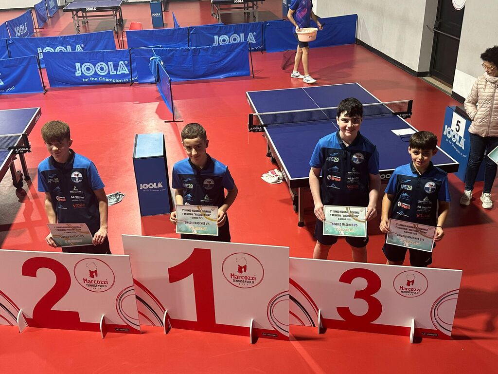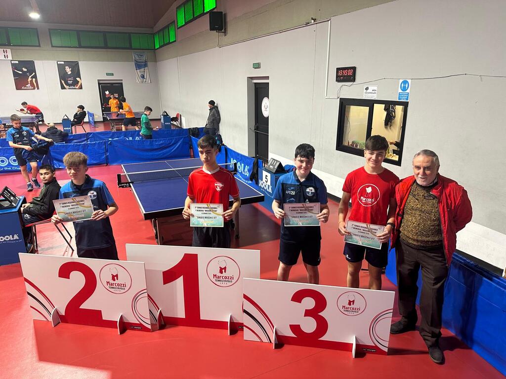 I sei partecipanti vengono suddivisi in due gironi vinti rispettivamente dalla testa di serie n. 1 Luca Calamida (Marcozzi) e Mattia Carrus (n. 2) del Tennistavolo Sassari, noto per essere stato selezionato dal tecnico regionale Francesca Saiu al Ping Poing Kids 2024 in Umbria. Ed è proprio lo junior di stanza nel capo di sopra ad imporsi successivamente nel tabellone superando in tre set proprio il favorito locale. Podio più piccolo per Leonardo Concu (Muraverese) e Giovanni Arisci (La Saetta Quartu).