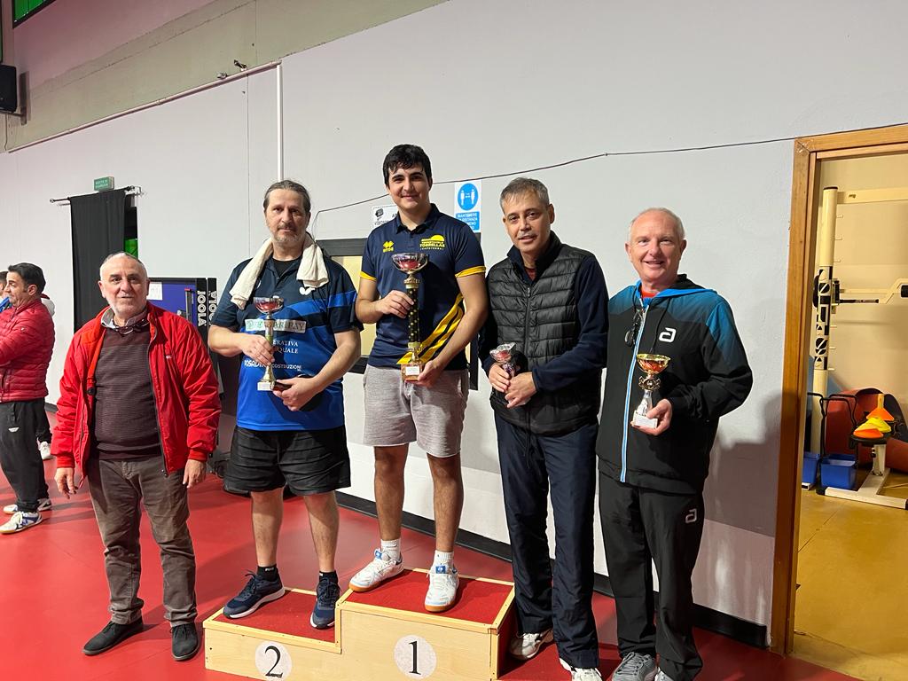 Altra battaglia con in lizza nomi noti che assiepano i campi di gioco dell’isola nei campionati a squadre. Tra i trentotto protagonisti, quelli da battere risultano Guido Lampis (Azzurra Cagliari), Costantino Pilo (Santa Tecla Nulvi) e Mattia La Gaetana (Tennistavolo Decimomannu). Ma è il quarto nome, pronto a dare giocosi dispiaceri un po’ a destra e un po’ a manca. Ormai Nicola Carboni del Torrellas Capoterra è diventato temutissimo e questo nuovo successo dovrebbe trainarlo verso il vertice regionale della categoria. Tra le sue prime vittime nel tabellone ad eliminazione diretta compaiono le due speranze marcozziane Filippo Picciau e Zemgus Lai. Poi il gioco si fa duro ma gli bastano tre parziali per sgominare Lampis, mentre nella finalissima, gliene servono quattro per superare il pur bravo Pilo la cui ascesa è stata caratterizzata dalle vittorie riportate su Marco Lai (TT Carbonia), Luca Broccia (TT Guspini) e Pierluigi Montalbano (Muraverese).