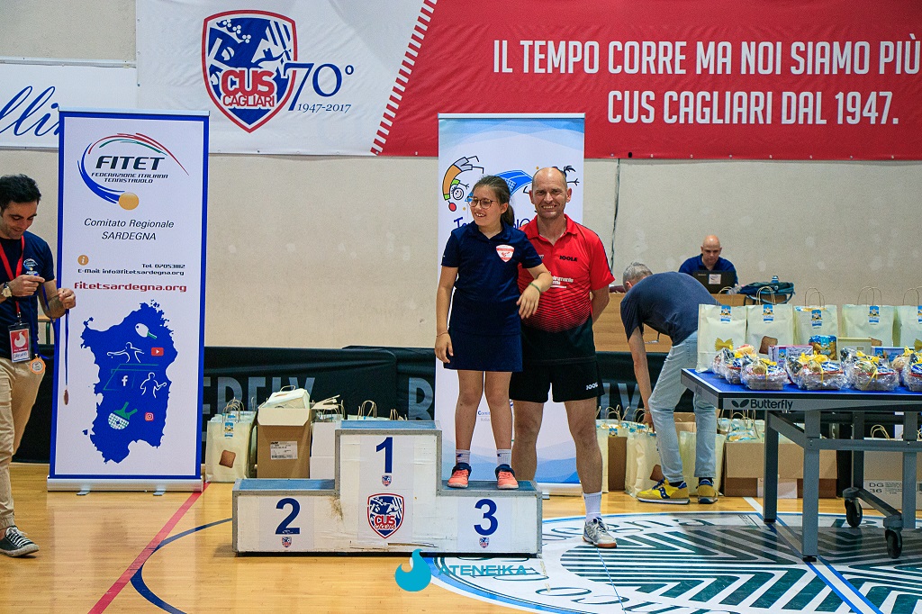 All’interno della Palestra A del CUS Cagliari si è registrata una doppia prima volta di Marco Poma: sia come Campione Regionale nel singolo, sia perché è riuscito a battere il famigerato Maxim Kuznetsov. Il monserratino in forza al Tennistavolo Sassari dedica il titolo al padre Sandro perché nella sua gloriosa carriera non l’ha mai vinto. Il russo – guspinese della Marcozzi, dal canto suo, si emoziona e fa commuovere i presenti perché condivide l’esperienza nel doppio misto con la secondogenita under 11 Elèna (TT Guspini). E poi contribuisce ad allungare il record di Stefano Curcio (Marcozzi), nel doppio maschile, che arriva al suo nono titolo in questa specialità, spartito finora con sei compagni diversi.