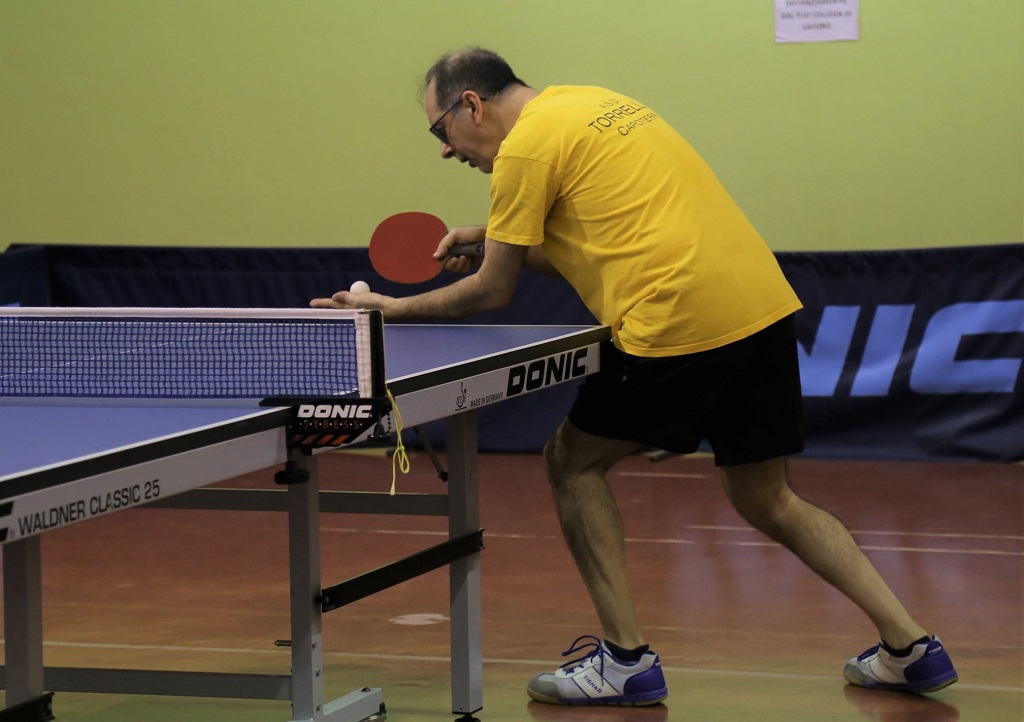 Il Torrellas Gialla ospita e batte il Carbonia Bianca nel big match della giornata. “Gli ospiti si presentano in formazione tipo – espone Giuseppe Lepori – con Enrico Bianciardi, Federico Ibba, Marco Ibba e purtroppo l’infortunato Luciano Macrì contro il quale mi avrebbe fatto molto piacere giocare. Il Torrellas Gialla risponde con Celestino Pusceddu, Maurizio Piano e io. Abbiamo dato il benvenuto agli avversari con i quali ci lega una antica amicizia. Tra Piano e Federico si registra un avvio determinato del mio compagno, poi si registra il ritorno piuttosto impegnativo del giovane carboniese che riesce a imporsi 11-9. Il bel gioco espresso dall’ospite prosegue anche nel terzo set, ma stavolta Maurizio è pronto a rispondere punto su punto e passa nuovamente in vantaggio. Il top spin di Piano è determinante anche nella frazione successiva, però Federico non sta a guardare e fa il possibile per impensierire il veterano che comunque si aggiudica il parziale di misura.