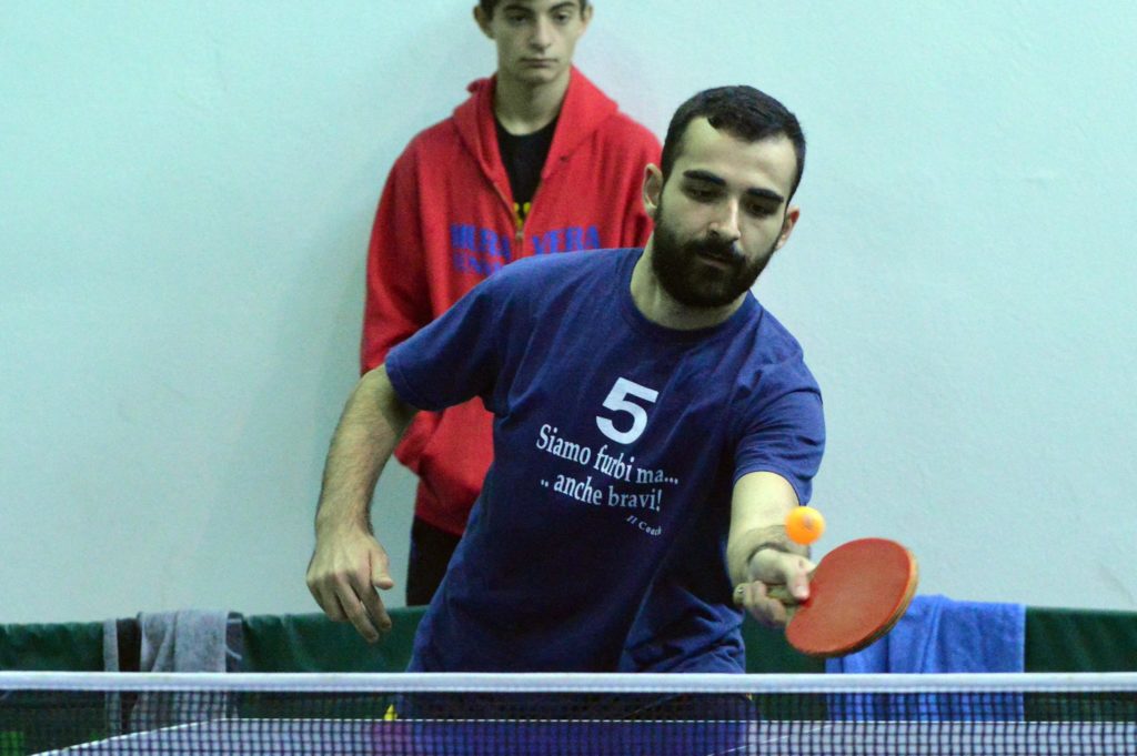 Domenica mattina si disputa l’incontro tra Muraverese Rossa e Sassari. E tra i protagonisti compare all’improvviso Alberto Mattana, costretto a fare il salto di categoria dalla D2 alla B2 causa defezione di Riccardo Dessì. Ma per lui, fare squadra con i ben più noti veterani Riccardo Lisci e Marcello Porcu è un gioco da ragazzi. “Anche Sassari è in formazione rimaneggiata – illustra il muraverese – vista l’assenza di Tonino Pinna sostituito da Claudio Sabino. Inizia l’incontro proprio quest’ultimo contro Porcu che porta il primo punto alla Muraverese per 3-0. Dopodiché tocca a me contro il nigeriano Segun Olawale. Nonostante la netta superiorità del mio avversario vinco il primo set e combatto per i successivi tre che lui vince in modo abbastanza agevole seppur molto tirati, soprattutto nel quarto. La terza partita viene vinta da Lisci su Baraccani per 3-0 dove prevale la solidità sia tecnica, sia tattica del mio compagno. Sul 2-1 per noi si gioca la sfida più bella dell’incontro intero dove Porcu soccombe solo al quinto per 11-9 contro Olawale. Nonostante la superiorità dell’avversario Marcello riesce a metterlo in difficoltà in più occasioni. Lisci-Sabino è una formalità dove il pongista guspinese chiude la pratica 3-0. Al netto del risultato anche Baraccani-Mattana è una formalità: a parte il secondo set perso ai vantaggi, non sono mai riuscito a mettere in difficoltà Luca, pagando la totale assenza di allenamento. A dispetto delle aspettative la partita successiva tra Lisci-Olawale è vinta nettamente per 3-0 dal secondo dove mai per un attimo abbassa la sua intensità e martella Lisci senza dargli possibilità di entrare in partita. L’ago della bilancia di tutto il match lo fa la penultima partita tra Porcu e Baraccani. Nonostante avesse rimediato un leggero infortunio al piede nell’ultimo punto della partita contro Olawale, Marcello riesce a battere l’avversario per 3-0, complice un atteggiamento del sassarese troppo morbido. Sul quattro pari batto Sabino 3-0: rimanendo concentrato, porto alla vittoria la Muraverese Rossa”.
