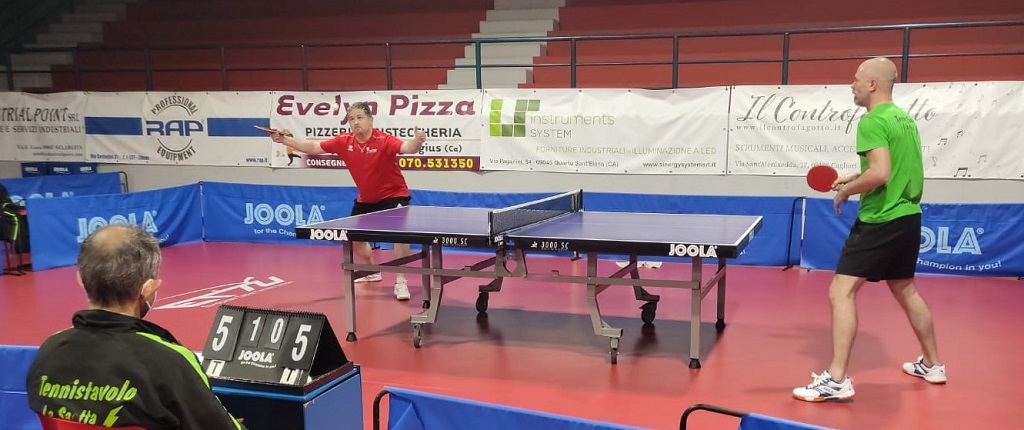 Tra Marcozzi e Decimo Rossa, come all’andata, finisce in pareggio. Il resoconto è di Aldo Franceschi: “Inizia il nostro presidente Tomaso Fenu contro Filippo Picciau: il primo cerca di contrastare il gioco veloce del secondo che sblocca il risultato. Primo set da dimenticare per me: affronto Zemgus Lai che mi lascia a 1. Poi sul 2-1 si va ai vantaggi ma Zemgus, ogni volta che ci incontriamo è sempre più forte. I primi due punti li mette a segno Antonello Mura che avendo una puntinata ha reso difficile il controllo a Varis Lai e Picciau. E cosi sul 3-2, ce la giochiamo io e il giovanissimo Leonardo Rasulo che si farà sicuramente; buona l’impostazione, il tempo e gli allenamenti faranno sicuramente il resto. Partita abbastanza semplice per me che gioco rilassato facendo largo uso dei tagli e forse questo non permette al giovane marcozziano di chiudere il punto con il top spin. Vinco e consegno il definitivo pari alla mia squadra”.