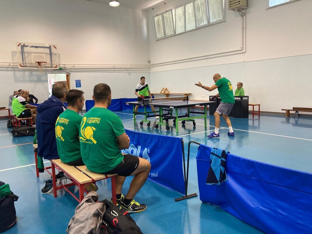 Il Tennistavolo Quartu vendemmia nel derby cittadino con La Saetta. L’arrivo dal Tennistavolo Norbello di Maurizio Muzzu capita a fagiolo perché l’infermeria è un po’ affollata e tutti si domandano cosa sarà quando tutti i pezzi si saranno ricomposti. Intanto il macomerese si fa concreto sgominando Alessandro Mercenaro e bissando su Simone Sebis. Riccardo Di Giovanni fa la sua prima apparizione in maglia verde liquidando tranquillamente Alessandro Concu ma poi subisce la vendetta di Mercenaro. Punti anche per Marco Isola su Sebis e di Nicola Orani che subentrando a risultato già acquisito non teme Concu.