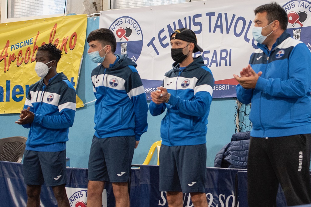 Si sta acclimatando bene al campionato la matricola Tennistavolo Sassari che raggranella un altro prezioso punto. “Nella prima trasferta di questo combattutissimo campionato – rileva il coach Mario Santona – conquistiamo un altro pareggio sul difficile campo della Stella del Sud Napoli con un punto a testa per i nostri Ganiyu Ashimiyu, Marco Poma e Marco Sinigaglia. Passano in vantaggio i padroni di casa con Rocca che batte Poma, poi noi facciamo il break con il nigeriano Ganiyu su Di Marino e Sinigaglia su Babatunde. Una grande occasione la perdiamo nel quarto incontro con il nostro straniero che vince i primi due parziali nei confronti di Luigi Rocca che, recuperato un set, si ritrova sotto 8-5 nel quarto. Purtroppo per noi il forte pongista calabrese è riuscito a recuperare e vincere.