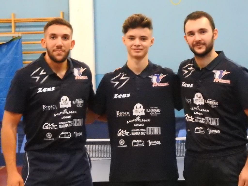 Anche il Muravera TT rimane a punteggio pieno seppur sudando assai contro i veterani dell’Azzurra. Quattro match terminano al quinto set, ma i sarrabesi la spuntano con due punti di Emanuele Cuboni (su Licio Rasulo e Guido Lampis) ed uno a testa di Aurora Piras (su Lampis) e Sara Congiu(su Rasulo).