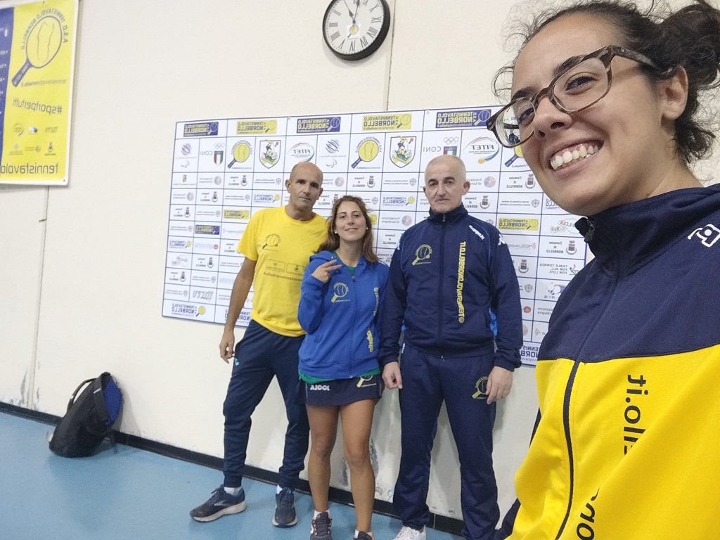 Nella sfida tra Tennistavolo Sassari A e Libertas Ping Pong Monterosello si attendeva il derby in casa Scudino tra papà Pierluigi e la figlia Chiara, ma i sorteggi hanno detto altro. Per Chiara la piccola consolazione di aver messo la firma nell’unico punto della sua squadra, dopo una partita prolungata con il classe 1936 Gianni Palmas, vinta al quinto. Samuel Paganotto non cede neppure un set a Martina Bonomo e Maria Elena Musio. Pier Luigi Scudino incrementa il bottino con due sigilli a scapito di Musio e Maria Laura Mura che si è arresa pure a Palmas.