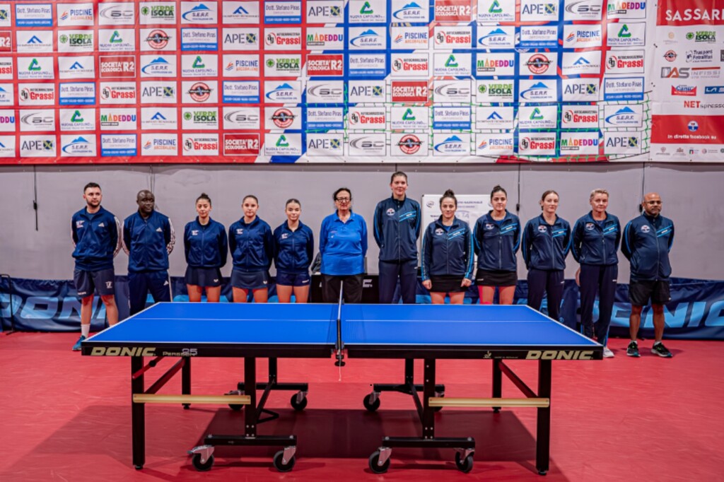 Il Tennistavolo Sassari A è invece leader del girone D. La prima delle due vittorie messe in saccoccia, sempre a Roma, giunge nel derby con il Tennistavolo Sassari B. Finisce 3-1 con doppietta del francese Nicolas Savant Aira che vince pure il doppio assieme a Maria Paola Tolu. La campionessa turritana deve però inchinarsi al suo compagno di allenamenti Maurizio Scanu (che ha condiviso l’esperienza con Giuseppe Demontis). Nel secondo match dominano il Libertas Ping Pong Monterosello (Giovanni Battista Sanna e Lorenzo Sanna) con un’altra doppietta del transalpino e il primo successo stagionale della Tolu.