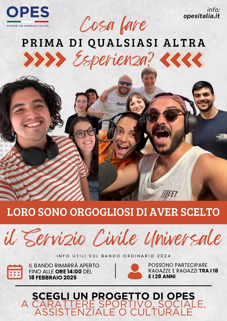 La domanda di partecipazione dovrà essere presentata online entro il 18 febbraio 2025 al link: https://domandaonline.serviziocivile.it/