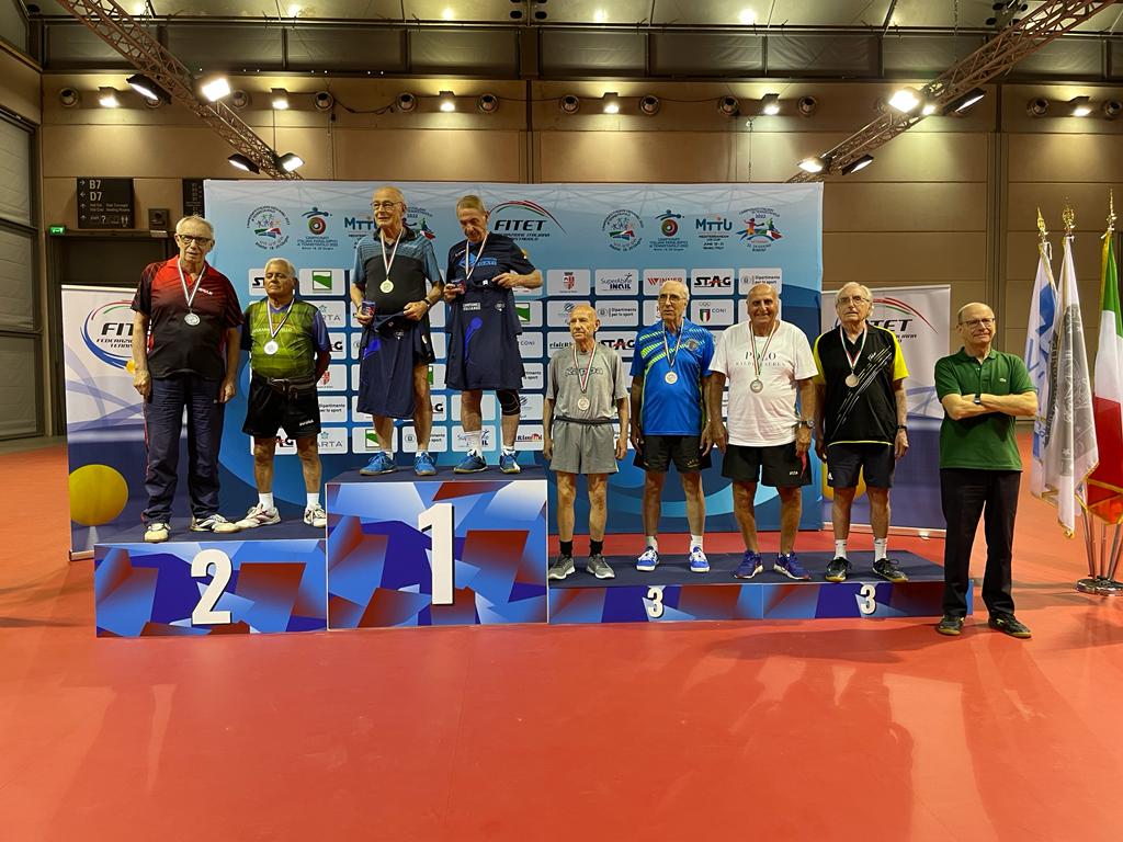 L’unica medaglia sarda doc è firmata da Efisio Pisano che la ottiene assieme a Carlo Occhipinti (Tennistavolo Senigallia A.S. Dilettantistica), con il terzo posto nel doppio maschile over 80. Altri bronzi giungono ancora da casa Tennistavolo Norbello con Ana Brzan nel doppio misto in comproprietà con Gianluca Mastroberti (Tennistavolo Ennio Cristofaro) e da Elena Rozanova (Muraverese) nel doppio misto 40/50 in coppia con Carlo Larini (A. S. Dilettantistica Pongistica Messina).