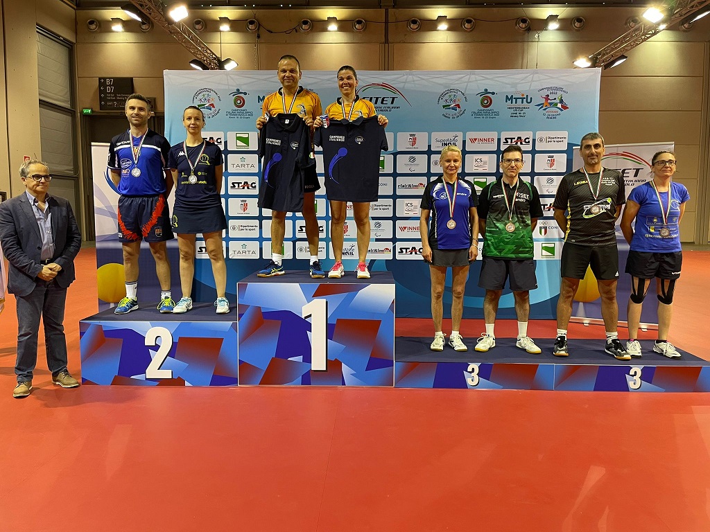 Le tre hanno aperto la sagra delle medaglie d’oro aggiudicandosi lo scudetto nella A1 femminile veterani. Ana e Marialucia fanno proprio il doppio femminile over 40/50, mentre Di Meo e Nagy sbaragliano tutte le concorrenti nel singolo over 40/50 e over 50/60. L’italo-ungherese Nagy completa la scorpacciata di tricolori trionfando nel doppio femminile e misto over 50/60, rispettivamente con Giovanna Giordani (T.T. Nettuno Bologna) e Filippo Giuliani (Tennistavolo S. Polo).