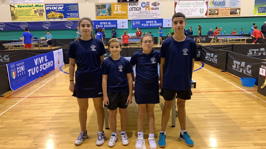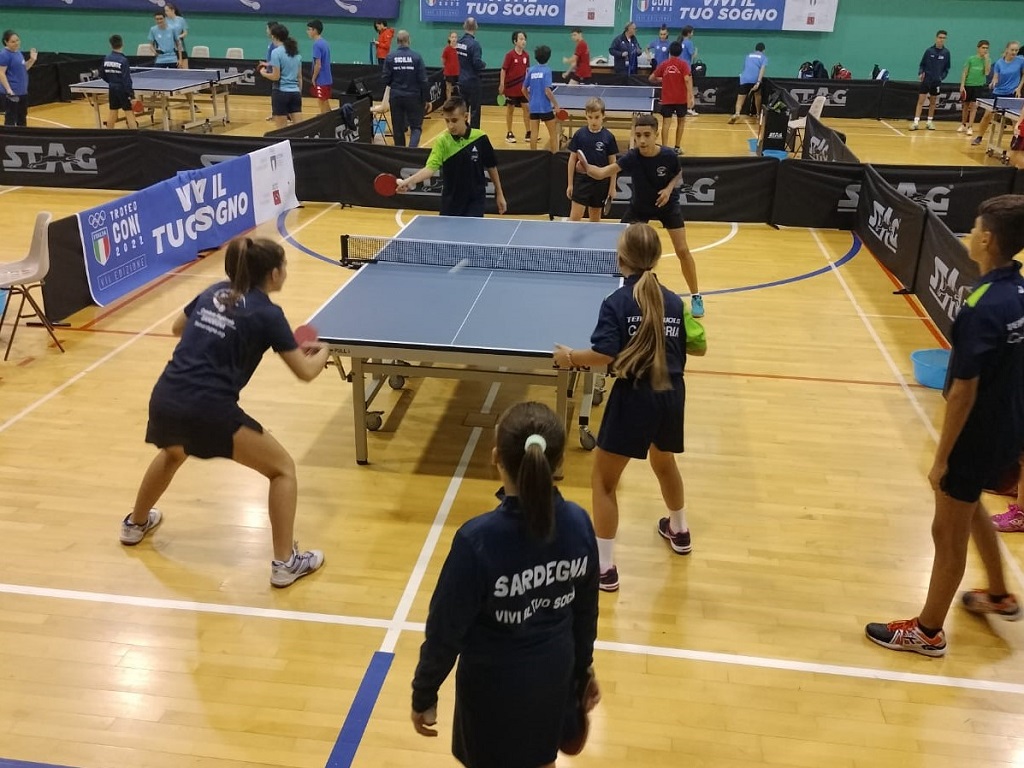 Una girandola di emozioni che serberanno in un angolo della mente per tutta la vita. Quel concentrato di puro agonismo spalmato in pochissimi giorni di permanenza può decisamente cambiare l’esistenza, al di là del risultato acquisito sul campo. In realtà il settimo posto finale della FITeT Sardegna al Trofeo CONI svoltosi in Valdichiana (Siena) rappresenta un bel risultato, ottenuto con le due mini squadre di valori differenti che il tecnico regionale Francesca Saiu ha schierato in base alle esigenze. Nel corso delle sette gare complessive disputate chi ha giocato di più è stato il duo di singolaristi (ma qualche volta anche protagonisti nel doppio) composto da Laura Alba Pinna (Tennistavolo Sassari) e Luca Broccia (Tennis Tavolo Guspini). Ma hanno inciso sui risultati anche i piccoli doppisti Elèna Kuznetsova (Tennis Tavolo Guspini) e Federico Casula (Tennistavolo Sassari) vittoriosi in tutte e tre le circostanze in cui sono stati chiamati.