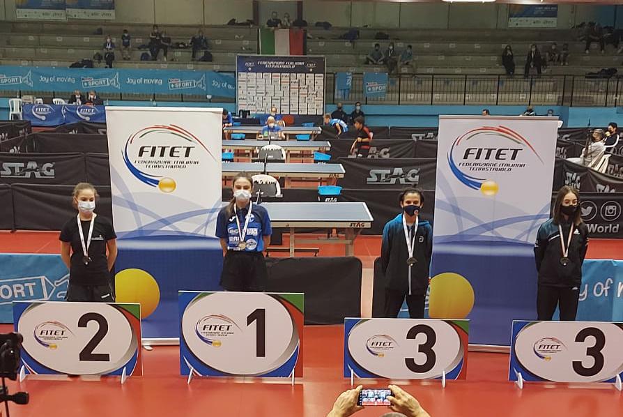 Della stessa partita ha fatto parte Eva Mattana, anche lei protagonista con un ben augurante terzo posto. L’ha seguita il fratello maggiore Alberto Mattana: “Eva è la numero 5 delle teste di serie. Nel girone vince in modo agevole per 3-0 sia con Maddalena Rosso (TT Verzuolo), sia con Jessica Hu Wenxin (Anspi Tennistavolo Cortemaggiore) ma è la seconda gara che la vede in maggior difficoltà. Tecnicamente non bella, da entrambe le parti giocata molto sui nervi e con il carattere. Eva, sotto 2-1. riesce a ribaltare fino a chiudere per 11-9 al quinto con tutti i set tirati fino all’ultimo. Passata come prima nel girone e con la X, al primo turno affronta Sara Franzoi (Circolo T.T. Cles) negli ottavi. Dopo aver vinto facile il primo set, si spegne il computer e in un amen si ritrova sotto 2-1. Dopo una lavata di testa, nelle fasi iniziali del quarto set a fatica riesce a ritrovare la strada e di conseguenza a portare a casa quel set stesso e successivamente anche il quinto. Approdata ai quarti Eva incontra Azzurra Marinelli (Tennistavolo Castel Goffredo) testa di serie numero 4 con cui non ha mai vinto. Nonostante arrivi da una partita tirata fino al quinto, dimostra di essere ancora mentalmente dentro il gioco e parte bene vincendo il primo. Nonostante il buon livello di gioco e la pregevole tenuta mentale di mia sorella, l’atleta di Castel Goffredo ribalta il parziale portandosi sul 2-1. Dopo un cambiamento sul piano tattico, che paga subito, Eva non molla e lottando punto su punto riesce a chiudere a 9 il quarto set portandolo a casa. Il quinto è un susseguirsi di punti giocati tatticamente bene e di emozioni che si accavallano nel vedere un traguardo mai raggiunto sempre più vicino. Che arriva con l’11-6 conclusivo, catapultandola così alla semifinale di un torneo nazionale in singolo, per Eva la prima volta. La attende Misceo, numero uno del torneo. Partita difficile con poche energie ma comunque onorata al meglio. Dopo aver perso i primi due set anche abbastanza combattuti Eva riesce a strappare il terzo, ma cede del tutto al quarto per 11-2 perdendo quindi la partita 3-1. Tutto sommato un buon torneo grazie al risultato finale che comunque rimane il primo traguardo importante in singolo. Tecnicamente ci sono ancora margini di miglioramento notevoli però ho apprezzato il lato caratteriale e il non aver mai mollato un punto. Torniamo a Muravera con una medaglia di bronzo, speriamo la prima di altre”.