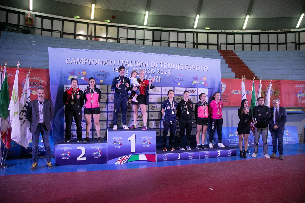 Sul fronte femminile, il primo titolo italiano da mamma non si scorda mai. È accaduto a Giulia Cavalli (Polisportiva Bagnolese), che ha condiviso sul podio con la piccola Sofia la gioia per il successo conquistato nel doppio di seconda categoria con Veronica Mosconi (Tennistavolo Norbello). Le due atlete avevano ottenuto la medaglia d’argento nel doppio assoluto nel 2019 a Bolzano e questa volta è arrivato il primo oro.