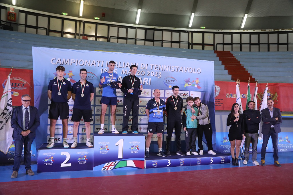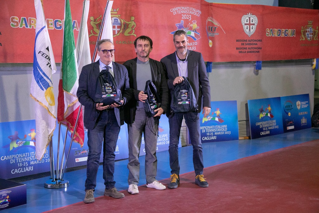 Ancora le società isolane protagoniste: condividono il terzo gradino del podio i n. 7 Damiano Seretti (Tennistavolo Torino) e Maxim Kuznetsov (Tennistavolo Santa Tecla Nulvi), cedendo in semifinale per 3-0 (9-11, 9-11, 6-11) a Bisi e Ragni, e i n. 1 Antonino Amato (Marcozzi Cagliari) e Danilo Faso (Top Spin Messina), che hanno perso per 3-0 (7-11, 4-11, 7-11) contro Manna e Allegranza. Il podio è stato premiato dal presidente federale Renato Di Napoli, dal vicepresidente vicario Carlo Borella e dal presidente del Comitato Regionale FITeT Sardegna Simone Carrucciu.